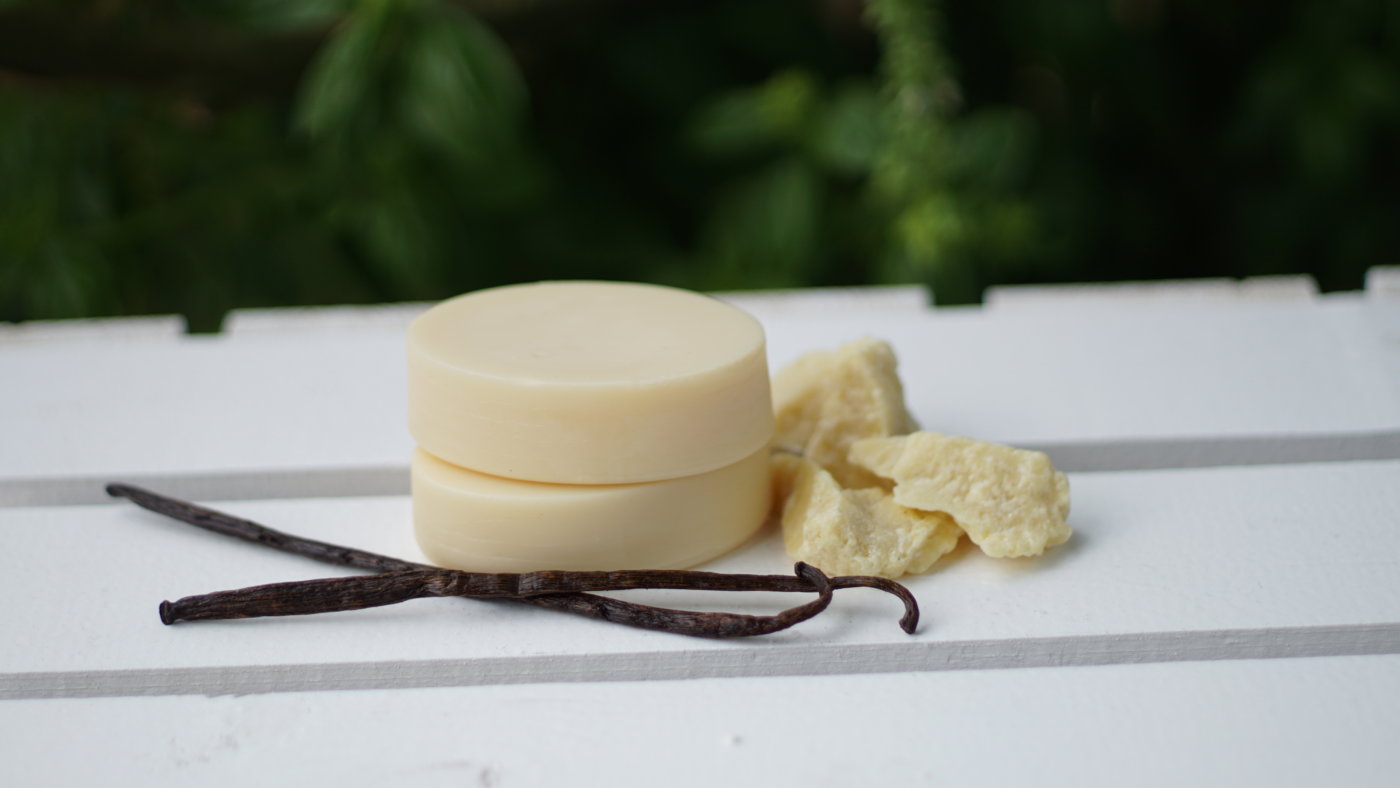 Unser Mazerat der Bourbon Vanille wird in der Body Butter Kakao-Vanille und dem Sensitiv Shampoo verwendet.